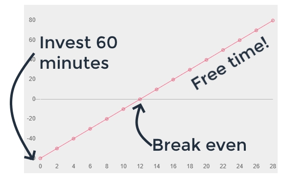 Say you spend 1 hour now creating an automation that saves 10 minutes a week. After 6 weeks, you have 10 more minutes for free.